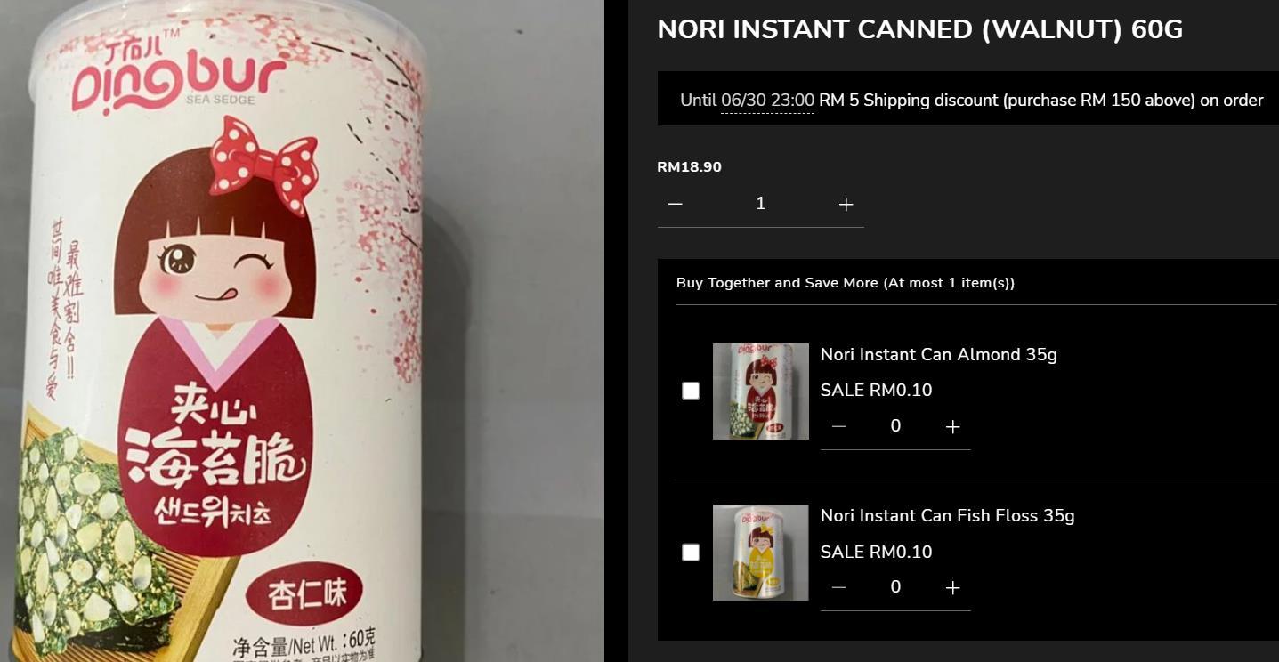 凡是购买 Nori Instant 60g (罐装),你可以用 RM0.10 购买 Nori Instant 35g.